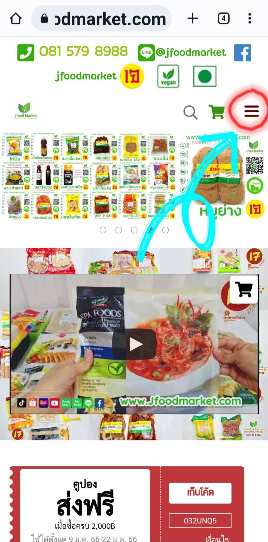 1. ไปที่หน้าแรกของเว็บ เลื่อนไปที่ด้านบบนสุด คลิ๊กที่ 3 ขีด ด้านมุม ขวา บน