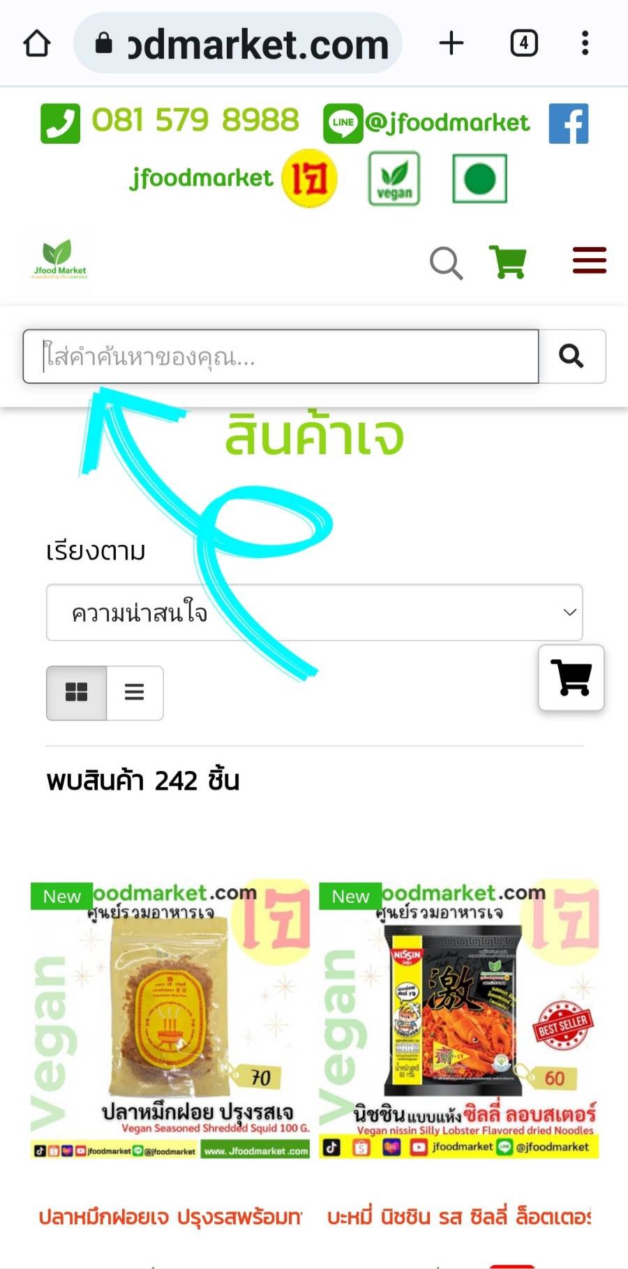 กรณี ไม่ทราบว่าสินค้าที่เราต้องการหาอยู่หมวดไหน สามารถพิมพ์ชื่อสินค้าที่ต้องการค้นหาใช่อง Search ได้ โดยช่อง Search จะปรากฎด้านบนทุกหน้าของสินค้าเจ